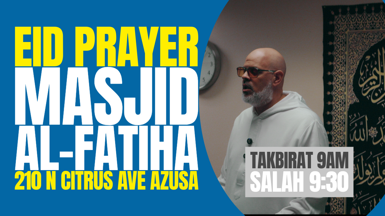 Imam Marc Manley will be delivering the Eid khuṭbah at Masjid al-Fatiha of America in Azusa (Google Maps link).